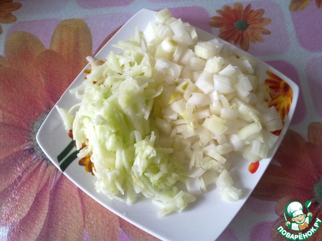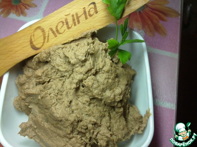 Снимите с огня, перемешайте и добавьте в миску с луком и яблоком. Соль и перец добавьте по вкусу и измельчите блендером до получения однородной массы. Продолжая измельчать, добавляйте сливочное масло.
