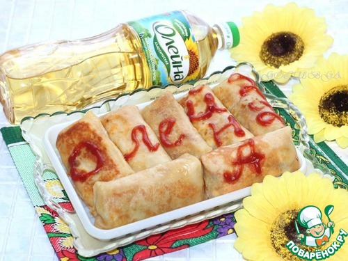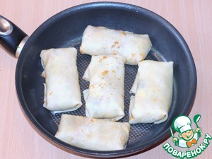 Обжарить конвертики с обеих сторон на смеси сливочного и подсолнечного масел (1:1) до золотистого цвета.