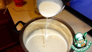 Добавлять воду нужно так, чтобы тесто получилось консистенция кефира.
