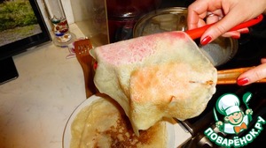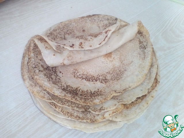 Блины тонкие получаются. А по краям - хрустящие. У меня получилось 15 штук.