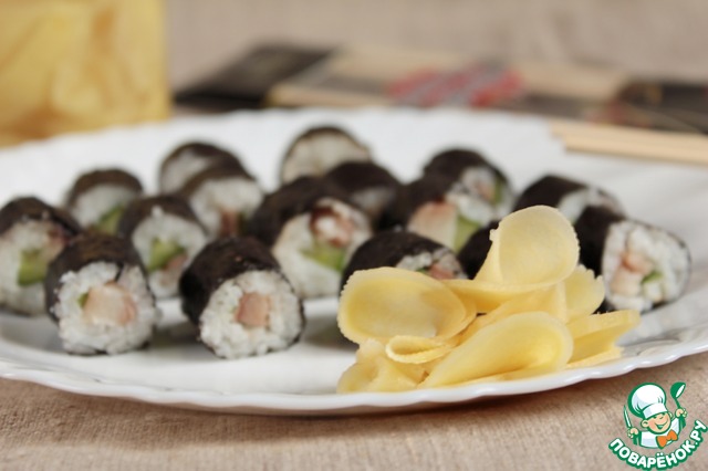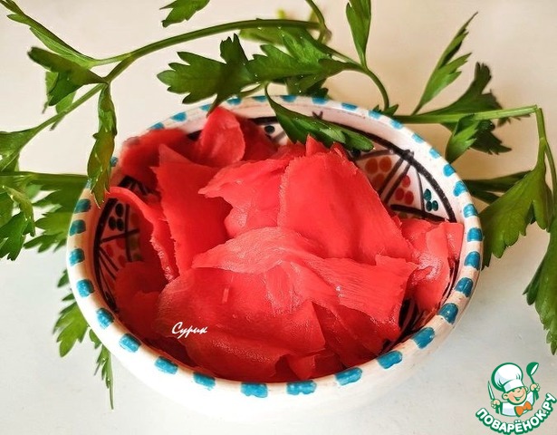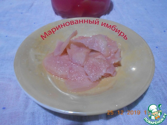 Этот рецепт я привезла из недавней поездки в Корею. В последнее время я крепко "подсела " на имбирь - и в чай, и в выпечку, и в блюда. Кто бы поверил, что еще полгода назад я его на дух не переносила. Но особенно мне нравится имбирь маринованный, его могу и просто так кушать. Но вкуснее всего, конечно же, с суши. Стоит ли говорить о том, что он без консервантов и всего прочего нам не нужного (на сайте уже есть пара рецептов маринованного имбиря, но мой все-таки отличается).