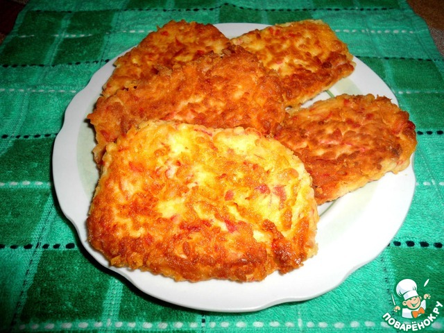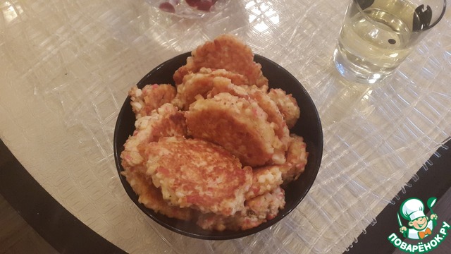 Рецепт «Оладьи из крабовых палочек и сыра»: