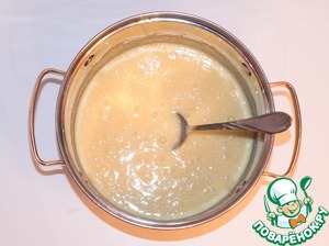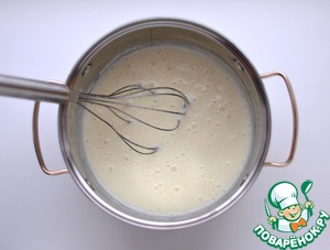 Варить на среднем огне до легкого загустения, все время мешая венчиком, иначе смесь может подгореть. Снять заварной крем с огня.