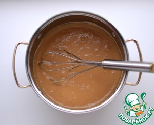 Следующий слой – карамельный мусс (он должен слегка схватиться, т. е. процесс желирования уже запущен).