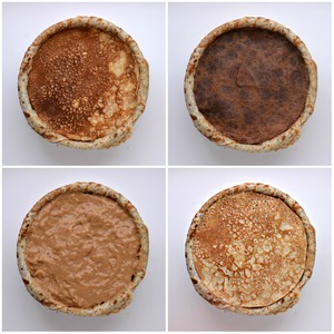 Накрыть маковым блином, затем шоколадным. Слегка утрамбовать. Выложить карамельный мусс. Прикрыть маковым блином.
