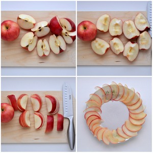 Выкладываем яблочные лепестки на бортики глубокой тарелки, чтобы лишняя жидкость стекла.
