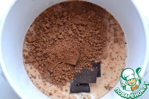 В 100 мл молока распустить шоколад (на водяной бане), добавив какао-порошок.