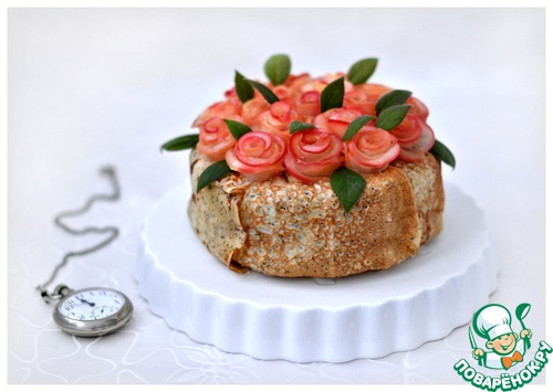 Свисающие края блинчиков завернуть сверху, на маковый блин. Смазать чуть-чуть муссом, прикрыть еще одним блином – сделать донышко.