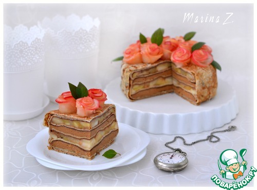 Рецепт «Блинный торт с карамельным муссом и фруктами»: