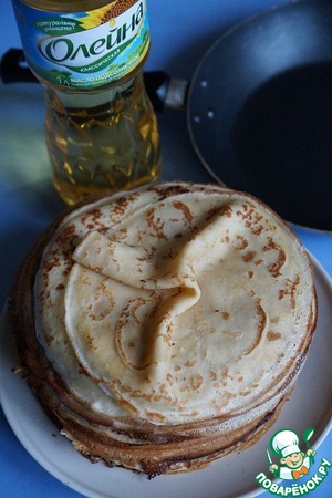 Смотрите, у меня сковорода 17 мм в диаметре. Если у вас больше сковорода или больше блинов, может потребоваться и больше заливки. -