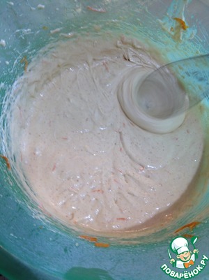 Затем введите по одному яйца, каждый раз тщательно взбивая.