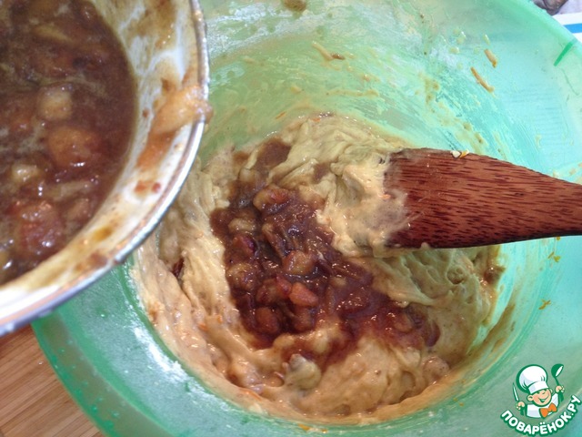 Снова вскипятите финиково-апельсиновую смесь и частями введите в тесто.