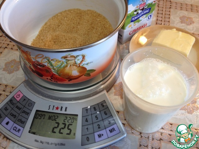 Тем временем приготовьте карамельный соус. В кастрюльке с толстым дном нагревайте на слабом огне, постоянно помешивая, сливки с сахаром и маслом, пока сахар не растворится. Прибавьте огонь и доведите смесь до кипения, тщательно размешайте и снимите с огня.