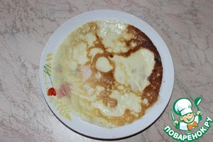 Каждый выпеченный блинчик промазываем чередуя начинку