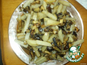 Разогреть в отдельной сковороде оливковое масло. Обжарить в нем баклажаны и картофель. -