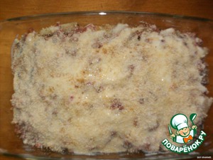 Посыпать сухарями и запекать в духовке при 200С 25 мин. Готовую мусаку можно подавать на стол, не вынимая из формы, в которой она готовилась, порезав на порционные квадраты. К блюду подать красное сухое вино.