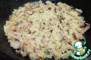 Добавляем панировочные сухари, перемешиваем. Начинка готова.
