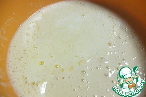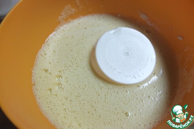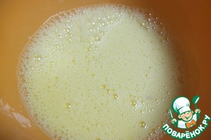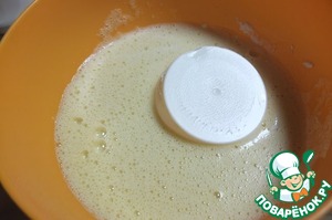 Яйца с ванильным сахаром взбиваем до пышности. Добавляем сахар, продолжаем взбивать