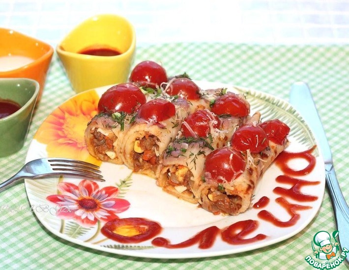 Рецепт «Блинные рулеты с сочной начинкой»: