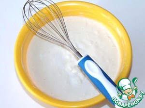 и просеянную муку. Добавить половину количества кефира. Хорошо взбить и добавить остальной кефир. Оставить тесто на 15 минут.