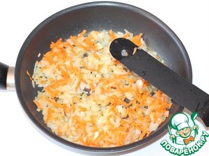 Положить к луку тертую морковь и и обжарить всё вместе.