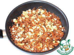 Добавить мясной фарш, периодически помешивая, так чтобы не было комков. Но не пересушите.