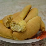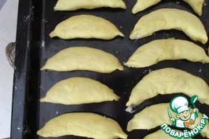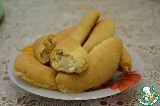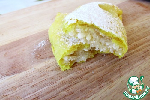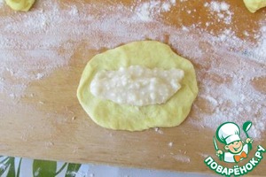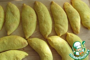 Защипываем края лепешечки, кончики сжимаем. Не старайтесь очень плотно защипать края, начинка не вытекает во время выпечки, она с мукой.