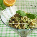 Смешать авокадо, сыр, чернослив, майонез. Посолить и добавить карри.