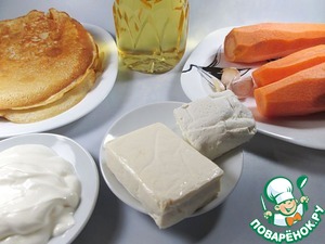 Ингредиенты для «Блинный торт с тушеной морковью и сыром»: