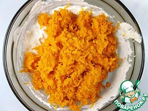 Выкладываем остывшую тушеную морковь к сырной массе, тщательно перемешиваем.