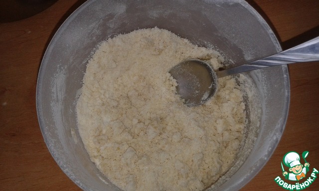 Влить растительное масло и снова перемешать. Получатся комочки