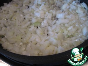 Мелко нарежем лук и обжарим до мягкости на подсолнечном масле "Олейна",
