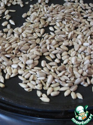На сухой сковороде слегка подсушим семена подсолнечника.