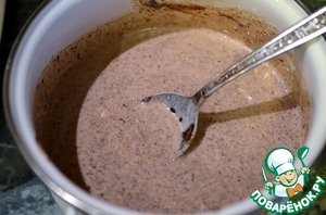 Для блинного теста смешиваем 60 мл молока, яйцо, сахарную пудру, муку. Добавить в тесто шоколад. Еще раз мешаем хорошенько. Добавляем небольшими порциями молоко. Тогда тесто будет очень гладким. Даем постоять полчаса.
