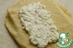 Две крайние бороздки заполнить творожной массой.