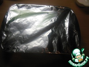 Накрываем фольгой. возьмите побольше, чтобы за края немного заходила, это нам потом понадобится!