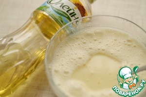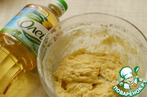 В чашке смешать муку с сахаром, яйцами, растительным маслом.