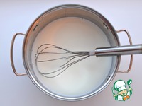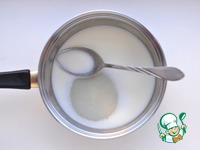 В кастрюльку налить молоко, добавить сахар. Включить огонь и мешать пока сахар не растворится.