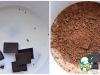 Шоколад распустить на водяной бане с какао-порошком и 100 мл молока, соединить с блинным тестом. Перемешать.