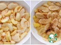 Яблоки почистить, вынуть сердцевину. Нарезать на дольки. В сковороде растопить сливочное масло, высыпать яблоки, посыпать сахаром. Пожарить 10 минут. Добавить бананы, мед и корицу. Пожарить еще минут 5.