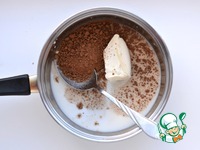 Добавить сливочное масло и какао-порошок. Хорошо перемешать. Варить при постоянном помешивании, пока соус не загустеет.