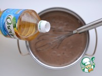 - Сковороду прогреть, смазать растительным маслом «ОЛЕЙНА». На середину сковороды ложкой вылить шоколадное тесто, имитируя круг.