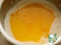 Яйцо растереть с сахаром, добавить крахмал, перемешать. Влить молоко и облепиховое пюре, хорошо размешать. |