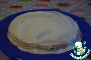 Каждый блинчик промазываем кремом. Десять блинчиков отложить не смазанными.