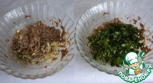 Добавить измельченные каперсы, чеснок, посолить, перемешать. Добавить нарезанную петрушку, перемешать.
