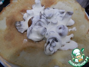 Рецепт «Блины с начинкой из грибов со сметаной»: