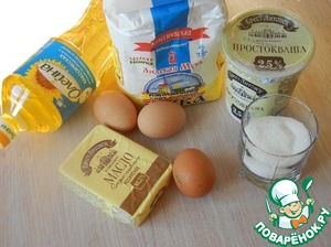 Желтки отделяем от белков и взбиваем с сахаром. К муке добавляем взбитые желтки и растопленное сливочное масло. Хорошо перемешиваем.