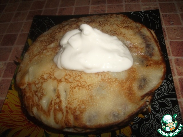Готовые блинчики подаем со сметаной или вареньем. Приятного аппетита!
