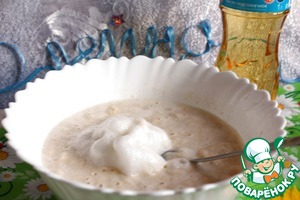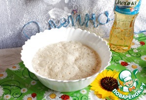 Полученную смесь соединить с 1 стаканом просеянной пшеничной муки. Размешать до гладкости, накрыть и поставить в теплое место примерно на час.