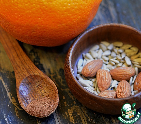 Добавить корицу молотую, цедру апельсина, дробленный миндаль и семечки.